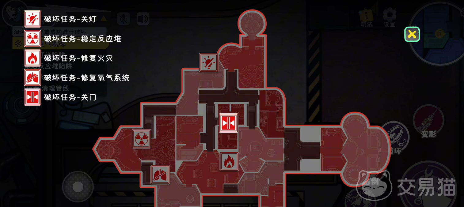 只需要点击破坏技能,就可以选择想要破坏的设施,例如对方的任务是关灯或者修复管道,大家就可以选择破坏灯泡或者管道了。不过在破坏的途中记住不要被其他人发现,不然很容易被发现你的刺客身份,从而在会议中被淘汰出局。