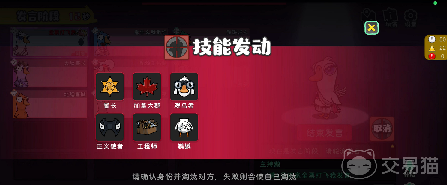 若是大家在游戏中成为了鸭子,那么就要了解鹅鸭杀手游刺客技能怎么样呢?毕竟刺客的技能更加丰富多变,并且带有一定的危险性,一旦失败或者暴露的话就会让自己提前出局。所以大家可以通过上方能力去了解刺客的技能以及相关用法,才能够更快拿下胜利。