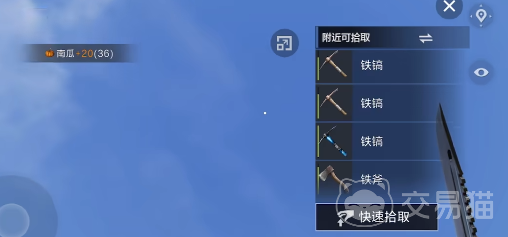 在跑的过程之中,我们可以看到很多的基础材料,这些材料咱们都可以进行收集。在收集一定的石头和木材之后需要做的就是更换自己的资源收集工具,这样会让我们的收集速度大大提升。