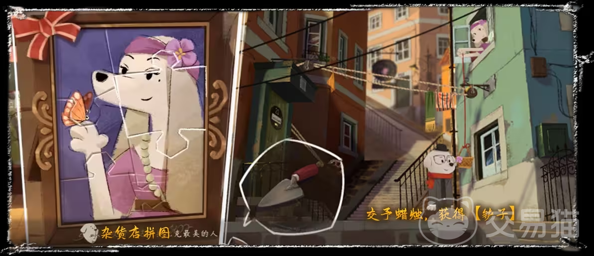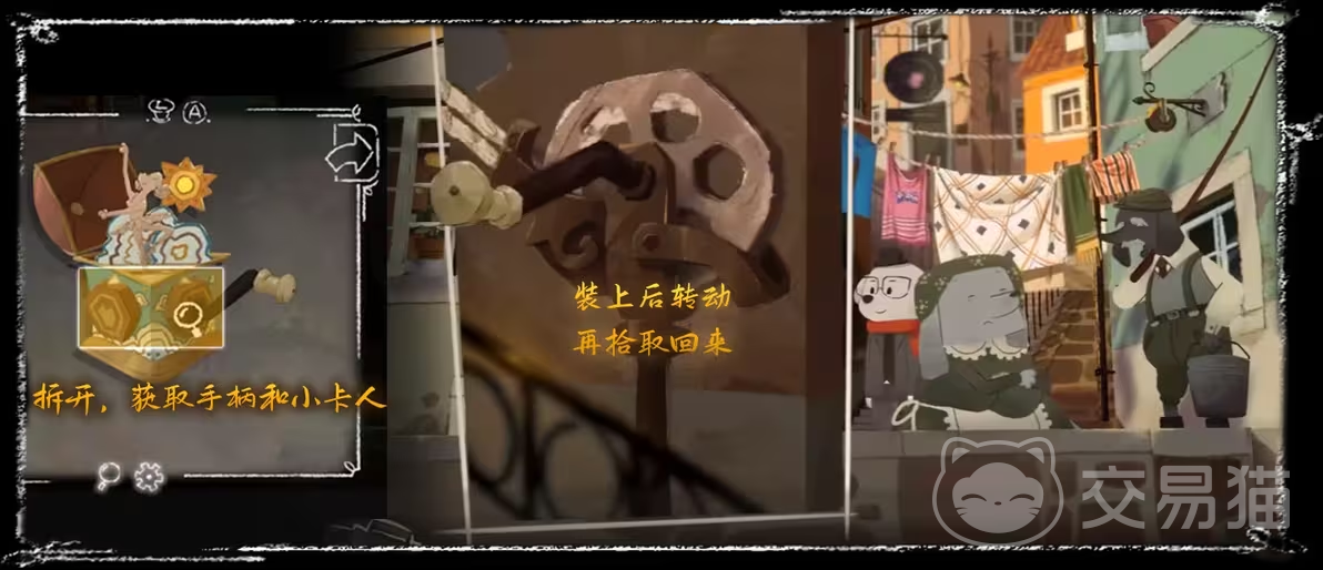 列车旅途不乏玄机:打碎时钟、获取指针,并按照抽屉的指示完成机关谜题。到达柳树街后,拾得地图,随后前往湖边与老钓手对话,获取钓出来的磁铁;再通过花绳与磁铁组合制作成“磁铁吊绳”,从下水道里吊出扳手,用以修复后巷的铁门。在这层层推进中,每一次对话、每一项小道具的使用都将你一步步引向面包配方的核心。