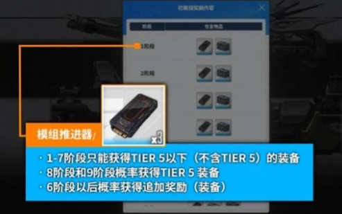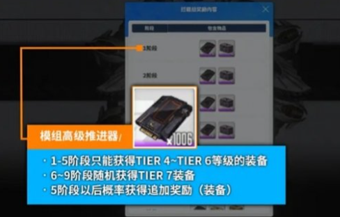当然在这一个战斗的过程中,也会分成多个不同的分类。如果是在拦截战 - LEVELD中,玩家就可以获得模组推进器阶段越高,获得的数量也就越高。在六等级之后,那么还可以有机会得到一些追加的奖励装备。