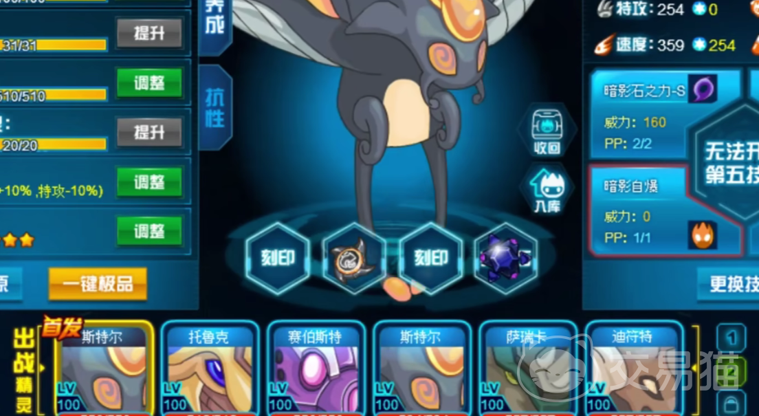 幻影蝶在游戏当中等级为高级,作为超NO精灵,她的属性为暗影。