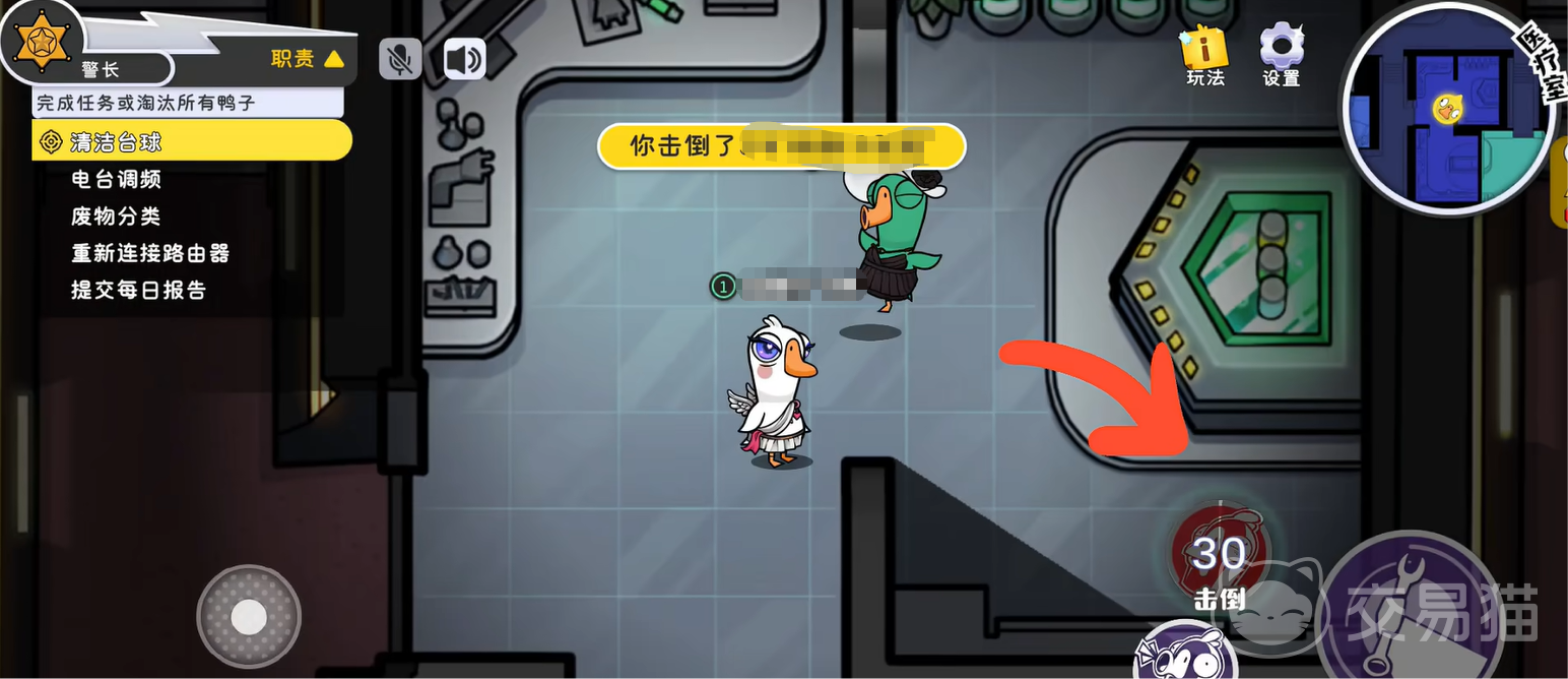 然后玩警长时也有一些进阶技巧,其实警长的击杀没有次数限制,但每次出刀都需要谨慎判断目标身份。要是大家觉得自己一刀解决不了敌人的话,那就可以连续一直点击攻击,这样就可以更快消灭对方。想要获胜的话,需要与鹅阵营一致,即完成任务、淘汰所有鸭子,或存活到最后。