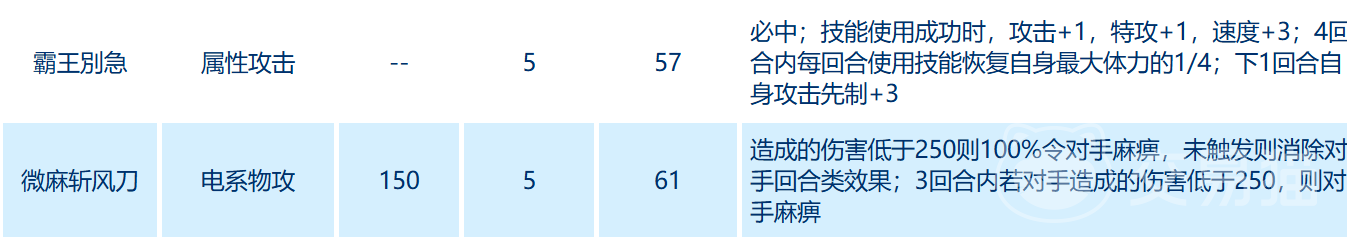 微麻斩风刀也是纯电系的物理攻击技能,该技能可以使用5次,每次击中对手都能造成150点的伤害,若是伤害低于250点的话,能100%的麻痹对手。