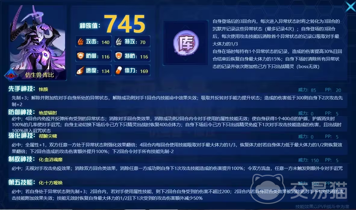库比并非典型意义上的暴力压制型精灵,它的强大,源于技能结构的高度联动性与异常状态机制的深度整合。从“状态读取”到“反向控制”,库比的每一次出招都如同一次数据层级的解构与重组,将对手纳入自己的系统逻辑中逐步瓦解。