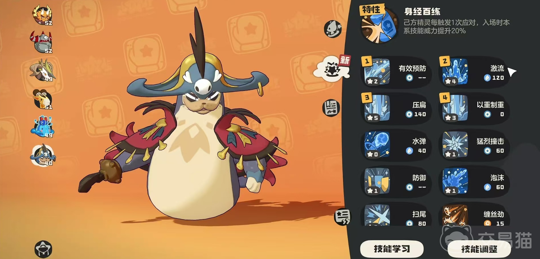 今天小编给大家带来的武队搭配思路是选择怒目怂猫、格斗小五、小皮球、格斗小八、海豹船长和棋绮后。在这一套搭配中,怒目怂猫的特性是打断时,被打断的技能进入两回合冷却,技能搭配是选择截拳、地刺、倾泻和借用。凭借这些技能,怒目怂猫可以成为团队中的肉袒输出,截拳可以应对打断,获得等于被打断技能能耗的能量,地刺也可以应对打断,倾泻能够驱散双方所有印记。