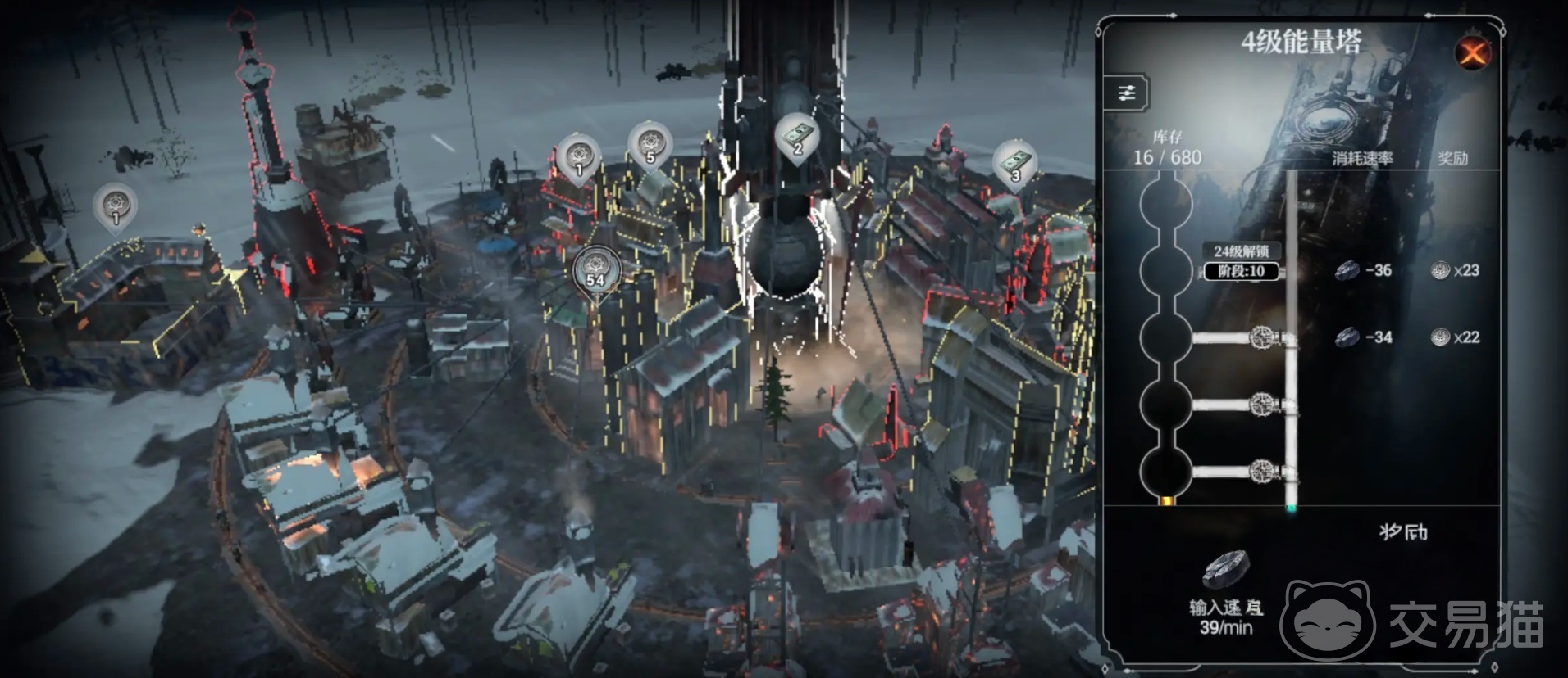 开局布局必须围绕两项核心资源展开:木材与煤炭。前者决定建造进度,后者维系供暖系统的运转。锯木厂和煤矿应优先建设,采集站作为前期资源整合的过渡设施,可在分散区域提供一定支撑。居住建筑建设应严格控制数量,满足基本安置即可,资源不应浪费在非必要建筑上。供暖策略方面,初期不建议立刻升级发电等级,而应利用发电机一级热区进行核心功能建筑的紧凑布局。合理利用“过载”功能可短时应对低温,但必须严格控制时间,避免设备损坏。