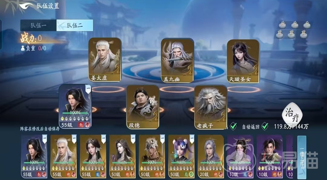 在阵容的站位方面,后排姜太虚、盖九幽和天璇圣女输出,前排主角、段德、老疯子,用于抗伤害。培养的时候,前期主要资源是给主角使用,等到7日签到领取到阴阳神剑之后,接下来就主养姜太虚,其他阵容角色跟上节奏就可以。这一套搭配无论是在挑战荒塔大世界的战斗中,还是悟道崖论道的战斗中都非常强势。如果以上有些角色没有获取,也可以用其他的道友来替换,只要主角和姜太虚保证激活羁绊就可以。