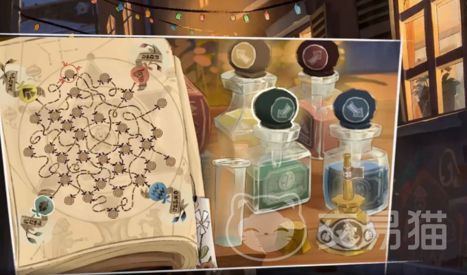 接着来到剧院门口和酒吧门口,能再次遇到这个角色,玩家可以继续在这个角色这里购买花束,在每一次买花的时候,对方都会赠送给玩家一瓶营养液,可以先把营养液收下,等到第二章的后半部分,还会有相应的解谜考验,玩家需要按照要求配置出相应的药剂,这个时候可以先加一滴蓝色,然后加三滴黄色,最后再添加上一滴绿色的,这样调配完成之后就可以直接用在发黄的花卉上,这样这些花卉就会焕发生机,这一项解谜任务也由此已经完成了挑战,可以继续向后推进,玩家也可以解锁植物魔法师这个成就。