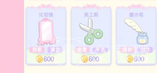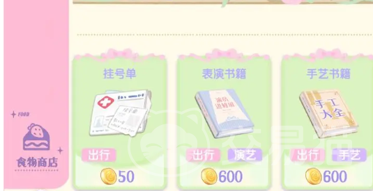 在旅行商店中,玩家就可以看到琳琅满目的商品有出行类的道具,例如通用车票。还有可以提升能力的书籍,有创作书籍,还有表演书籍等。除了这些之外,还有杂货铺里面的化妆镜、墨水笔等等。