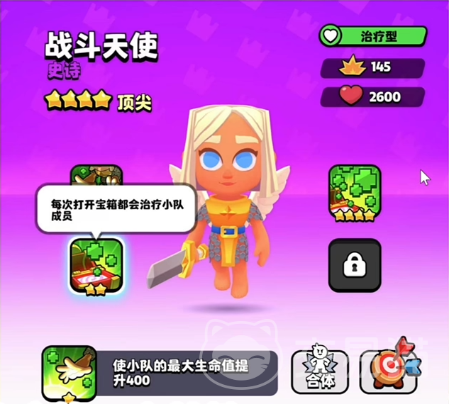 不要小看这个被动效果,这个能力在游戏的后期阶段,可以提高小队整体的容错率,能更好的保护自己拥有的宝石;在和敌人展开战斗时,箱子里如果开出战斗天使,也能获得一定的优势。