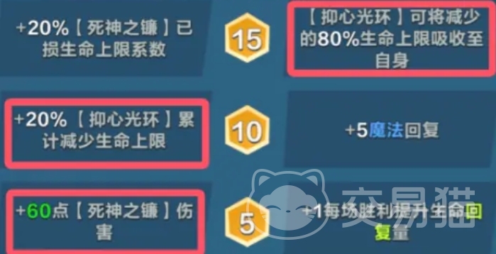 先来看死灵法师,这位在战场上向来以掌控生死之力而著称的英雄,此次的天赋调整可谓有得有失,其5级右侧天赋从原本的+1 每场胜利提升生命回复量”变更为+2 每场胜利提升生命回复量,这一改动虽看似只是数值上的简单递增,却在潜移默化中增强了他在持久战中的续航能力,使其能够在漫长的战斗进程中更好地维持自身的生命值,不至于因频繁的战斗损耗而过早颓势。