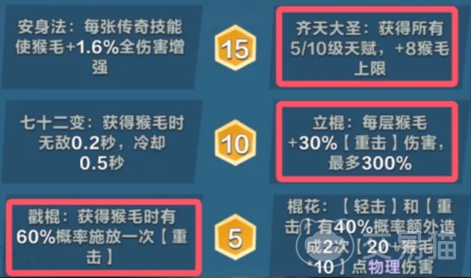 轻击和重击有40%概率额外造成2次20+猴毛10点物理伤害,这一改动让拥有棍花的猴哥真正成为了全能战士,集眩晕、无敌、站场物理伤害递增、被动造成额外物理伤害、附加伤害等多重特性于一身,真正摆脱了传统流派的束缚,如今的天命之子,只要18888金币,便能在天梯上分之路中成为玩家们手中的最强角色哦。