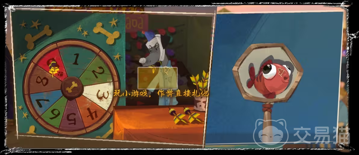大家要去体现的项目有两个,一个是扔飞镖,另一个就是捞鱼,扔飞镖的玩法想要获得胜利,就需要使用飞镖先扎店主的手,让他不在偷偷做小动作,这样就能轻松赢得胜利;捞鱼其实是比较看大家的运气的,这些项目获胜后,就能暗道兑换券,可以去兑换奖励。