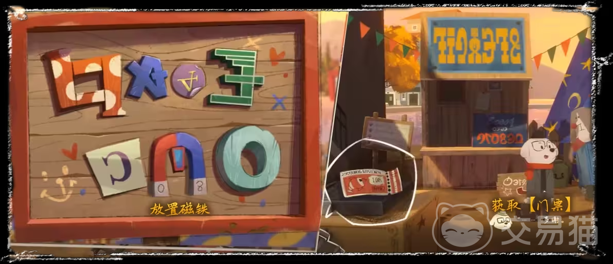 其实游乐园老板面临的难题其实就是游乐园的指示牌,这上面有字母的解谜,老板无法解开其中的谜题,这就需要玩家们将这个字母的谜题给解答,主要是使用吸铁石的道具将字母查分开来。