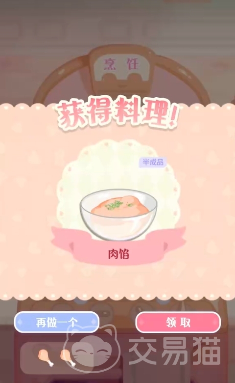 买好食材后,各位可在一个空闲的锅里放入两个单位的鸡腿,不久后它们就能得到半成品肉馅(一个单位),然后再用一个单位的肉馅和一个单位的鸡蛋进行烹饪,就能将蛋堡给制作出来了,非常的简单。