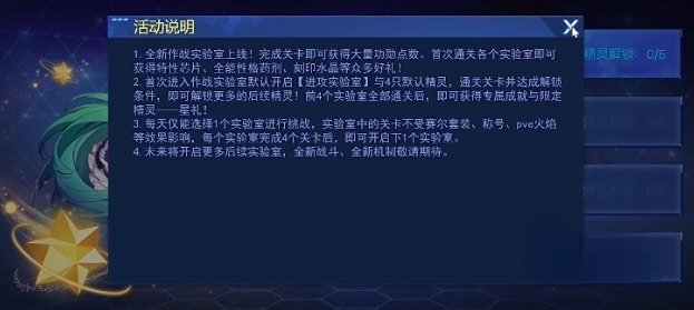 每天只能进入一个实验室进行挑战,并且在关卡中是不可以使用赛尔套装,或者是称号等效果,成功通过挑战后才可开启下一个实验室。