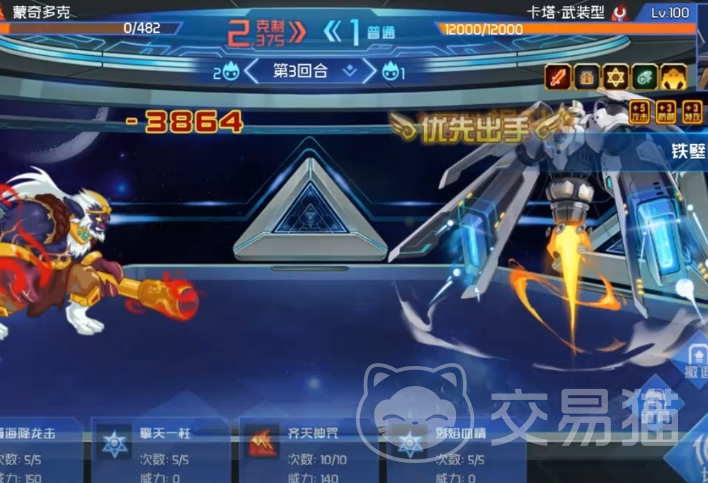 卡塔武装型每次登场后,首次攻击技能伤害提升100%,首次属性技能使用时70%概率令对手瘫痪 ,这是它在对战前期建立优势的关键,战斗开场若先用属性技能,一旦触发瘫痪效果,对手就会陷入无法行动的状态,为后续输出创造绝佳机会,要是先使用攻击技能,翻倍的伤害能瞬间给对手造成高额打击,可以让敌人血线大幅下降,并且当它击败对手时,还能重新触发登场效果,只要在战斗中不断收割,就能持续发挥这一强力特性,在多精灵对战中滚起雪球。