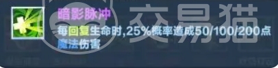 还有一种玩法是伤害不依赖普攻和大招,而是全靠暗影脉冲与魔爆来打伤害,在这个玩法中,普攻、剑刃风暴以及自然之力等技能和属性都只是为了触发暗影脉冲而服务,首先伤害暴击会触发剑刃风暴,剑刃风暴又能进一步触发暴击,暴击后可触发回血效果,而回血又会触发暗影脉冲,如果暗影脉冲同时具备魔爆属性且也触发暴击,那么就会形成一个循环输出的模式。