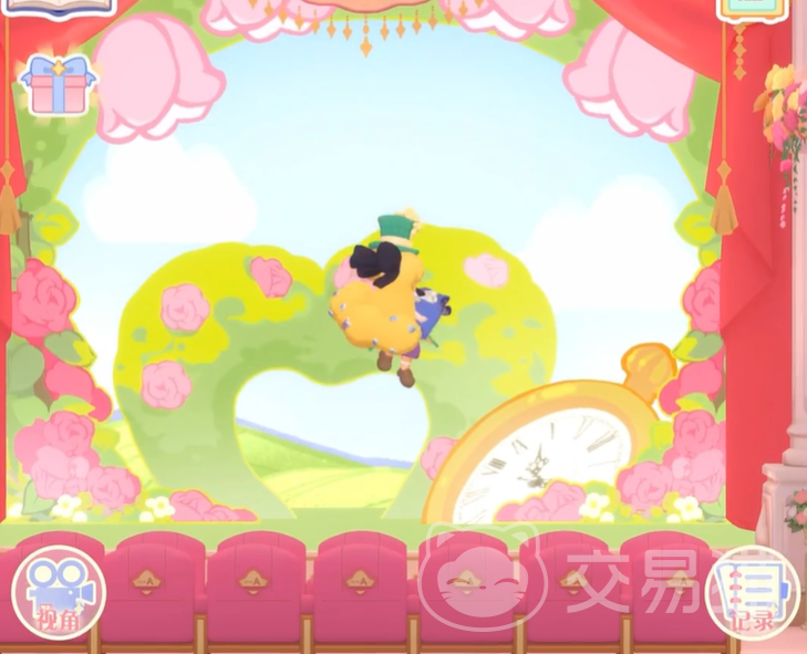 两人在空中进行双人舞蹈,感受梦幻的剧情演出,然后再这个爱心形状的草丛四处飞舞,最后回到地面拉着小人完成最终剧情的落幕。
