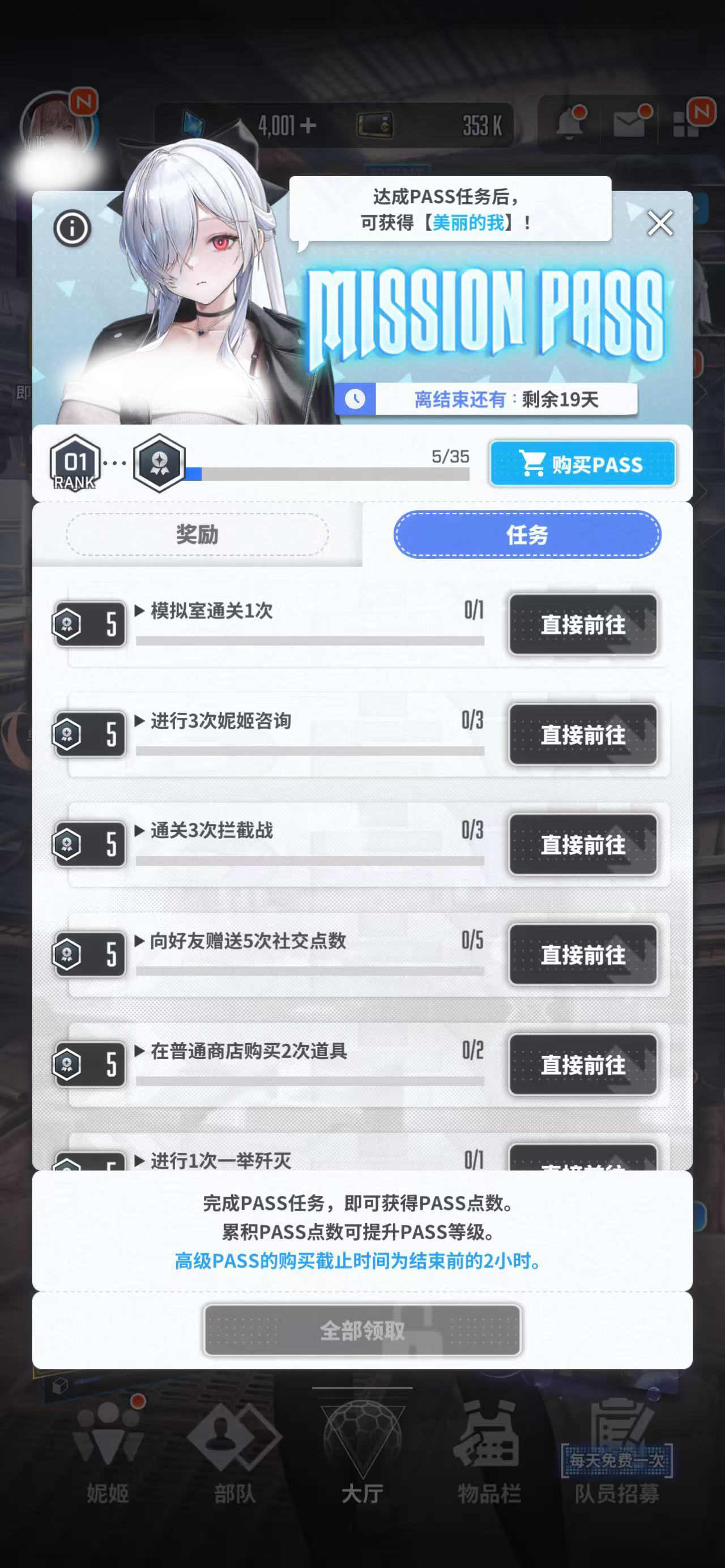不过要是大家的账号角色数量已满的话,或者已经拥有足够强力的角色并将其培养至最高练度,那就没必要去升级高级pass了,因为所带来的材料或者角色奖励已经无法吸引各位。另外做任务也很简单,只需要完成日常任务挑战,就能直接领取pass点数。
