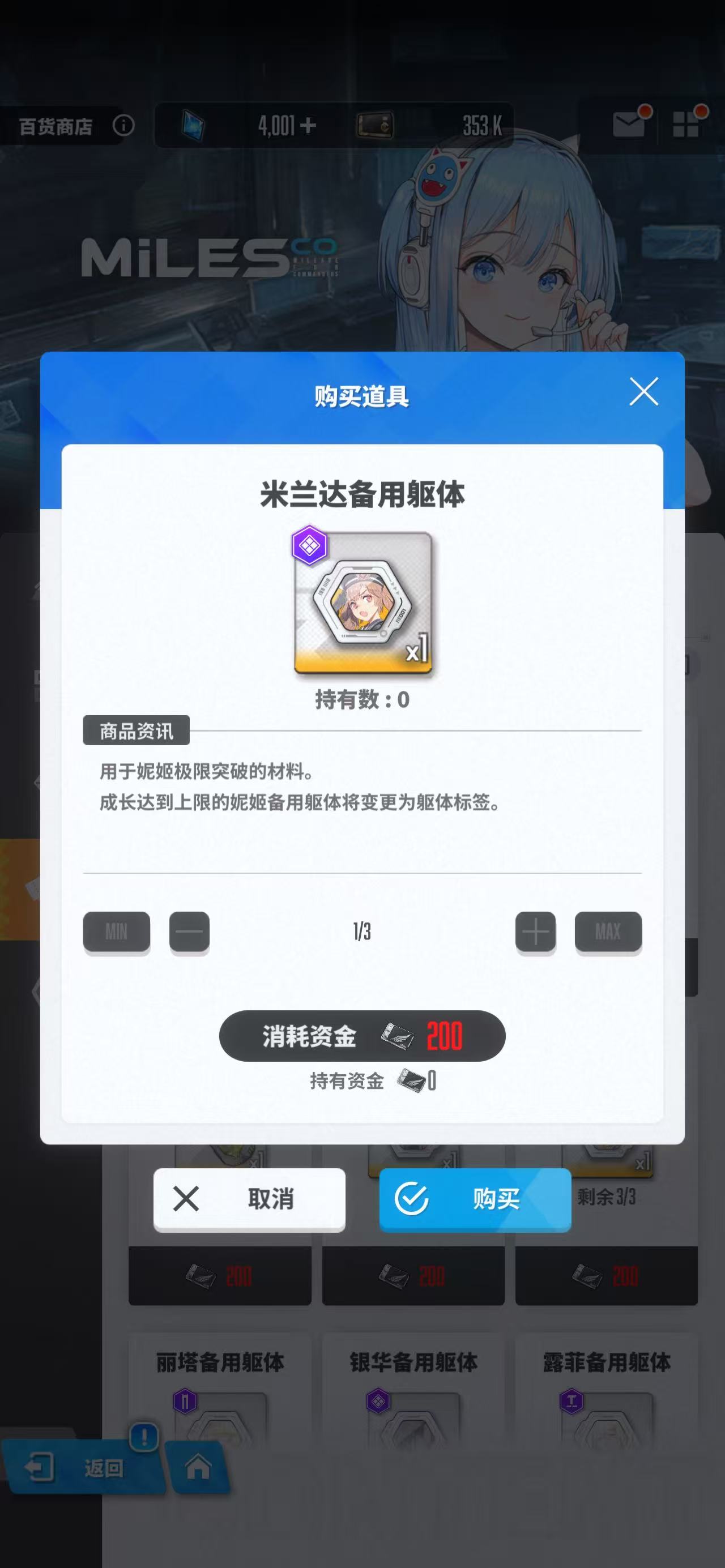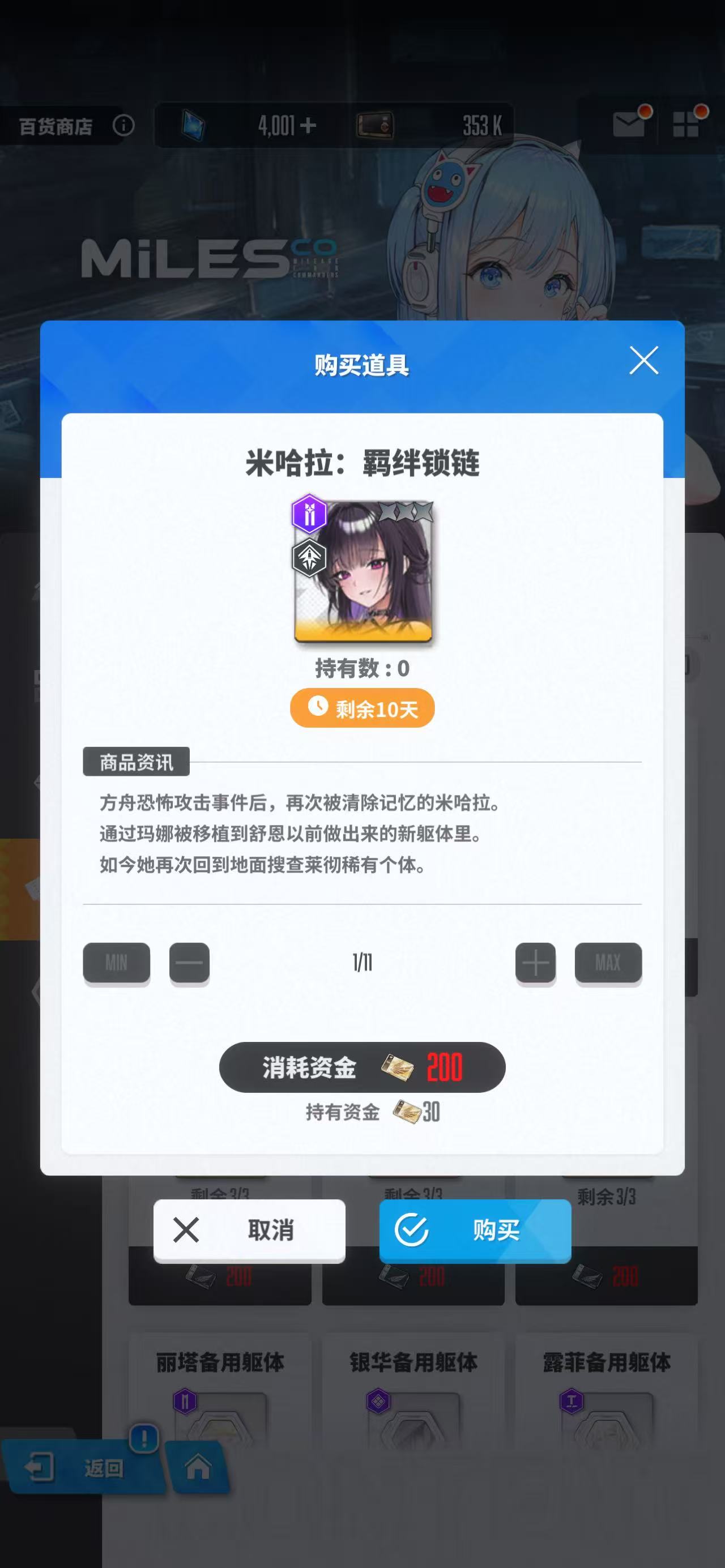 当然大家并不是为了购买大量的角色。在这里还可以用来兑换各种宝箱或者材料,例如花费200个黄金积分券购买一个角色自选宝箱,就可以获得第三赛季中所出现过的SSR级别的角色。另外还有一些备用躯体可以使用,要是大家打算提升某个角色的突破等级和技能等级,就可以用备用躯体进行强化了。