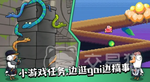 手游和端游可以玩耍,而且还可以支持联机玩耍。在游戏中主要是分成三个不同的阵营,如此多阵营的设计可以丰富整个游戏的趣味性,还有策略性。好人阵营就需要完成小任务,等到任务进度条满足之后就可以获胜。杀手阵营则需要去伪装执行任务,达到混淆视听的作用,终极的目的就是把所有的鹅消灭。中立的角色则拥有着各自独立的胜利目标,给整个游戏都会增加一些不可预测性。
