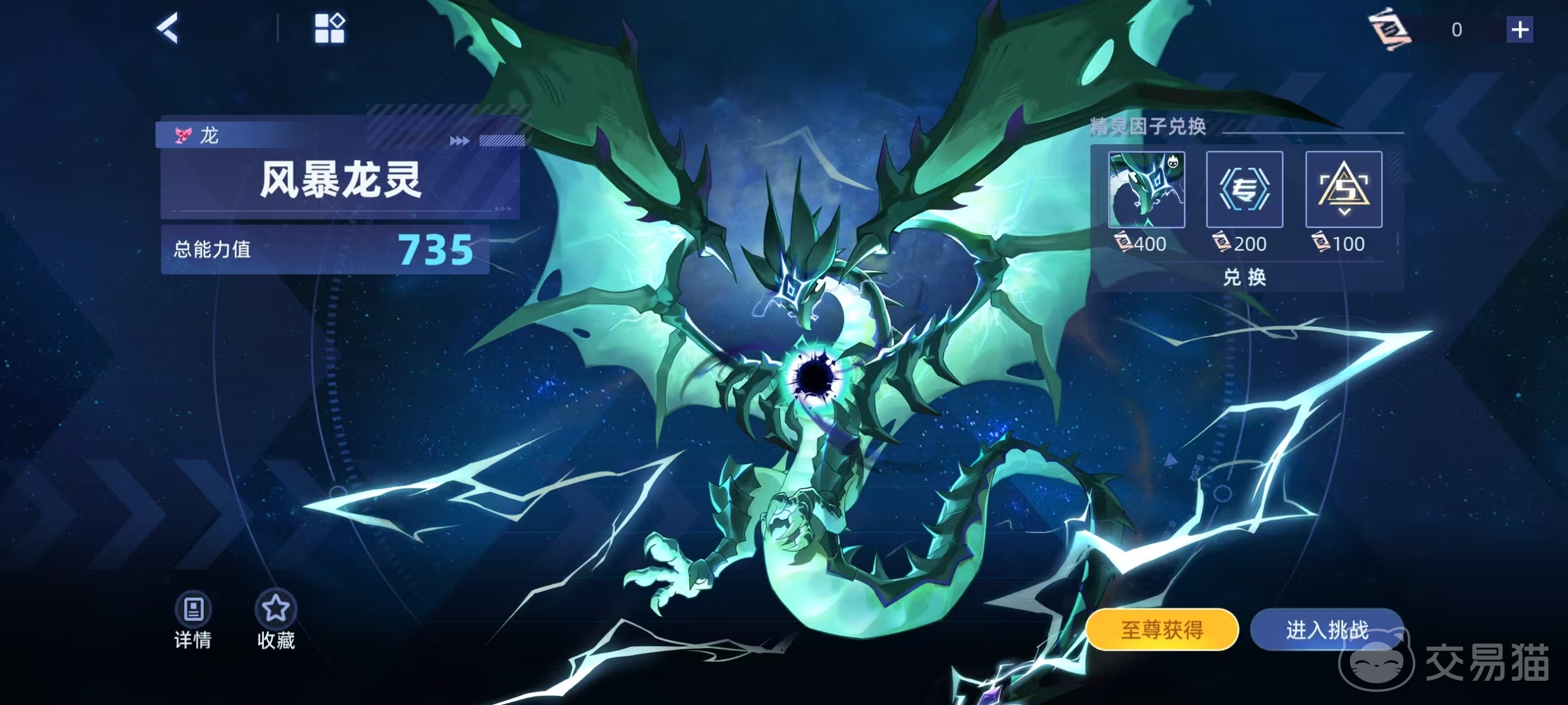 大家在主页面中找到图鉴功能,然后选择精灵图鉴从中输入风暴龙灵的名称,就可以直接找到对应的选项,点击风暴龙灵后,这里面有一个获取功能。点击获取,就可以前往到获取的页面中了,可以通过精灵因子兑换的方式得到。也可以点击至尊获得,消耗598钻石直接购买,这两种途径都可以帮助大家获取得到,钻石购买是最便捷的途径。