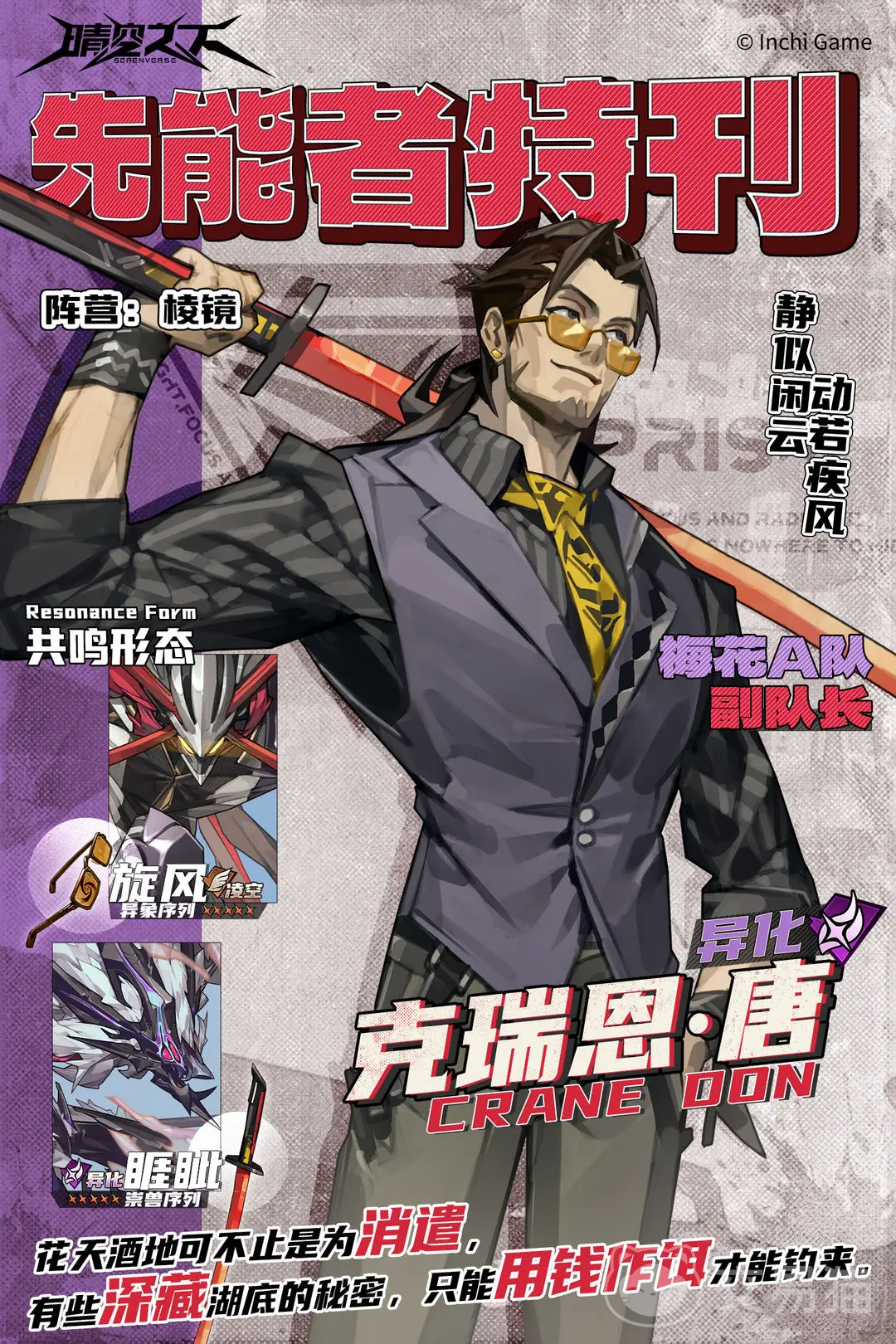 外表十分风流不羁的角色,却是异化定位中的佼佼者,具备强大的异能减伤效果,可显著的降低敌人造成的攻击伤害,让敌方不能对敌方造成高额的损伤,同时给敌方单位施加一些负面的效果,让敌方单位受到不同程度的限制效果,敌人的行动掣肘,还可降低对方的移动速度,总之是非常强力的控制角色,让敌人很是难受的存在。