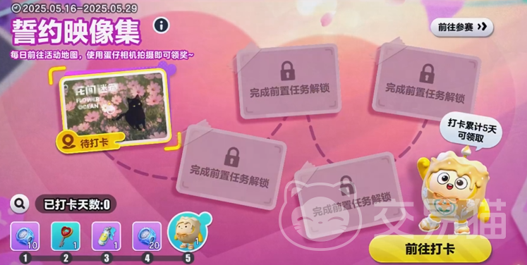 5月16日到5月29日会上线摄影活动,大家只要在期间用蛋仔相机进行拍摄,不管是照片还是视频,只要打卡满5天就可以领取到外观“香薰小蜡”,以及背饰“爱心钥匙”等奖励。
