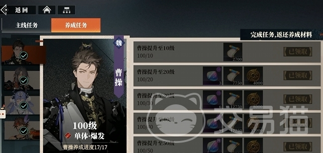 建议和蔡文姬,孙开朗,进行搭配,这个队伍是很适合前期的时候大家去用的。其中的输出位是曹操,他的单体攻击能力还是很强的,后续提高天赋的话还能增加暴击率。在血条比较低的时候还能够吸血,增强自己的生命力,生存能力十分的顽强。