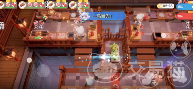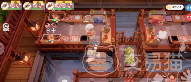 这本身就是二人转,不可以一直待在上面,接下来就应该准备好烤架,趁着烧烤还没有熟的时候,马上先去切菜,还是以上菜优先的准则。因为菜切好之后速度比较快,所以就需要给下一轮的才腾出足够的空间。这里的过道是比较狭窄的,如果没有冲刺,那么大家都会直接卡在这里。刚开始玩的时候,玩家就可以和朋友规定谁走在外面,谁走在里面,等到熟悉之后就不需要规定。