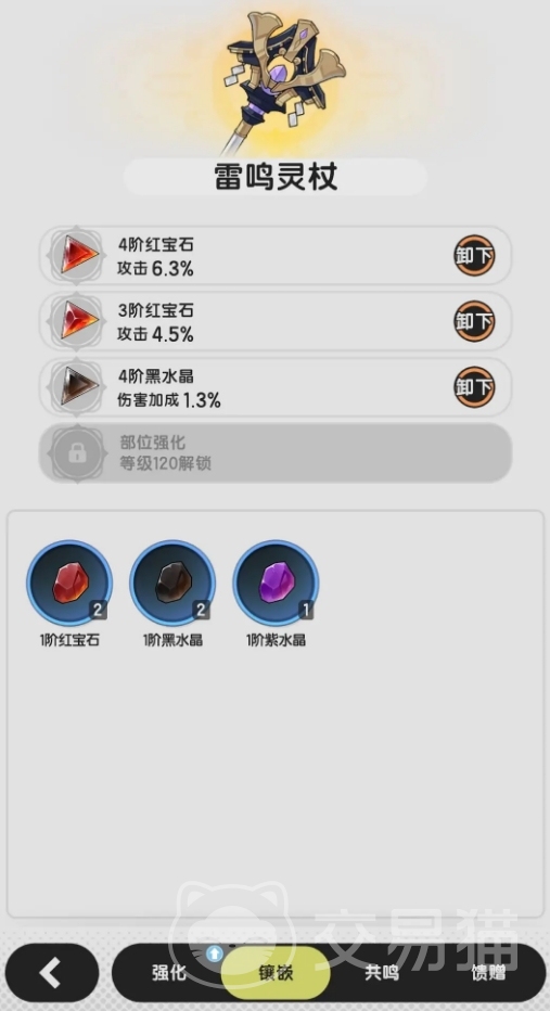 打开装备功能界面,各位可在里面找到镶嵌标签进入到宝石镶嵌玩法,只要装备的共鸣等级达到要求,装备便会解开对应的宝石孔位,玩家在下方可镶嵌的宝石中挑选自己想要的放在里面,就能完成对宝石的镶嵌。目前,每个装备部位最多能嫌弃四颗宝石,且宝石的类型可以重复,它们的效果也将会叠加。