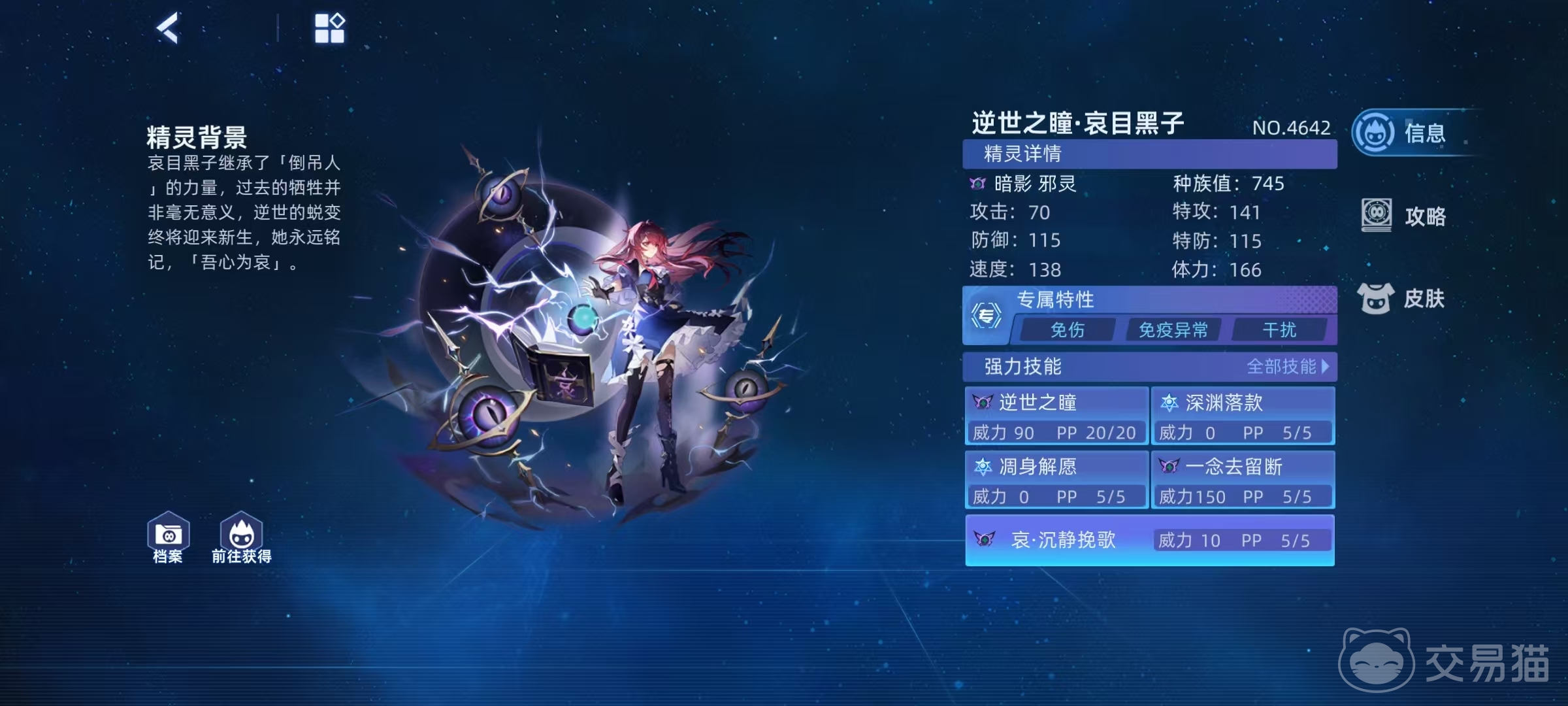 逆世之瞳的全称是逆世之瞳哀目黑子,是继承了倒吊人的力量,蜕变迎接新生后的全新精灵,今天小编就来详细介绍一下赛尔号巅峰之战逆世之瞳怎么玩。这个精灵属于暗影邪灵类型,自身种族值总和达到了745,这样的属性在众多精灵中都是一流的存在,所以是一个值得大家去获取和培养的。