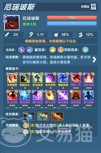 最后要推荐的便是宙斯,这位英雄的被动伤害在游戏开局阶段就已相当可观,即便是在不拿取额外卡牌的情况下,也往往能够凭借被动实现连胜,对于新手玩家而言,推荐尝试大招流的玩法,通过将大招的两个紫卡回魔技能点满,并将大招等级提升至40级,在天赋选择上按照左左右的模式进行选择,这样在释放大招的过程中,时不时地眩晕对手,能够完美地弥补大招释放前后摇所带来的时间空隙,从而让宙斯在战斗中的输出更高。