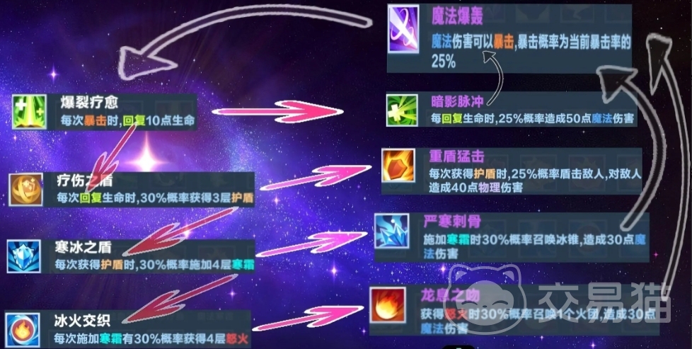 为了让大家更清晰地记住这个搭配逻辑,还有一个简易的公式需要背诵,就是爆回盾冰火,这个公式的含义是指在游戏中抓卡的顺序以及性价比方面的考量,回复体系的优先级是最高的,其次是护盾体系,接着是冰系和火系,暴击在触发流中扮演着连续起来的关键,如果一味地追求锁血而过早地拿取暴击,在实际战斗中反而容易暴毙,因为缺乏了其他体系的协同保护,这也再次强调了各个流派存在的意义以及它们之间相互配合的重要性。