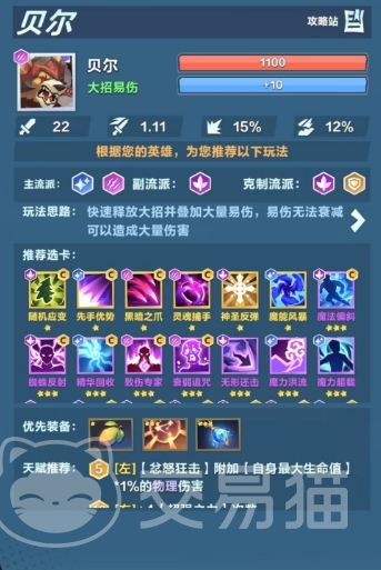 若选择走普攻易伤流这个流派,在天赋选择上通常为左左右的组合方式,在核心紫卡方面,应以攻速和易伤增加为核心要素,例如热血英雄这张卡,能够让巨熊之灵在战斗中越打越快勇气之瞬这张卡在有冰霜的局里面必须拉满,致伤专家可以增加永续易伤效果,衰弱诅咒则能大幅增加易伤层数,提升伤害输出,此外这个流派当中的四个金卡都可以选用,而保命金卡再战决心是其中最为重要的一张。
