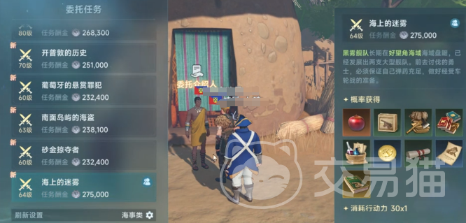 玩家来到开普敦去参加海上迷雾任务,那么掉落的几率是比较高的。这一个任务就会拥有丰富的奖励,其中会包括值钱的装备,还有书籍。在接取任务之后,建议玩家为了提高效率,只选择专注的打苹果。仙果在游戏中就是一个硬通货,价格基本上都是在3500元到4000元左右,需求量是比较大的,可以帮助玩家迅速的突破航海士,而且获取的难度比较低。