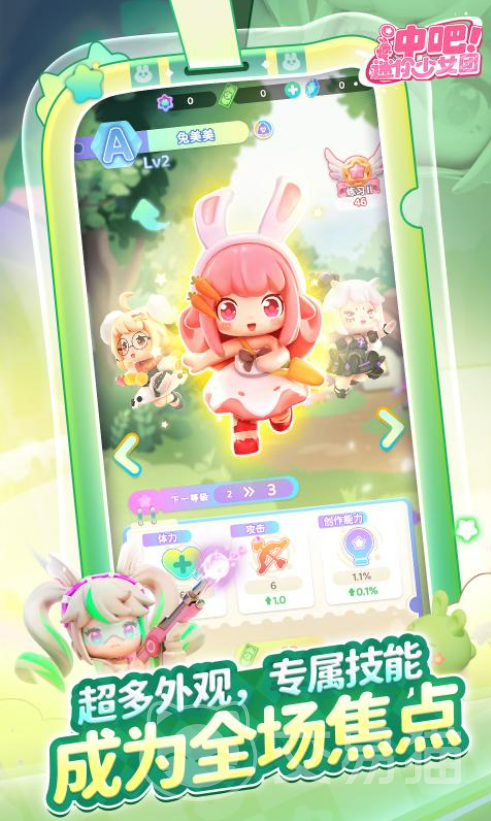 游戏最令人眼前一亮的,莫过于那缤纷得像棉花糖梦境的Q版画风。12位风格各异的迷你少女,就像是精心设计的扭蛋角色,每一位都个性鲜明、语音丰富,还有属于她们的小秘密等待玩家挖掘。你将以经纪人的身份,一边招募,一边发掘,一边调教,一边营业,不仅得让她们在舞台上光芒万丈,还要时刻防止绯闻八卦毁了公司形象。只要你安排得当,从素人到巨星,走红不过是时间问题。