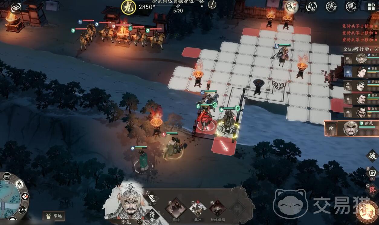 开局要优先解决视野问题。典韦的移动距离比其他武将多1格,应该让他走在最前面探路。徐晃要保持在队伍中间位置,距离典韦不超过3格,这样能确保触发后续事件。第一回合所有人先不要急着前进,在原地调整站位,让张辽和许褚分别保护左右两翼。记得把治疗武将安排在队伍正中间,避免被偷袭。第二回合开始后,典韦每移动2格就要停一下,等队友跟上再继续前进。