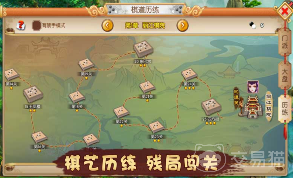 小伙伴们可以在棋道历练玩法中不断的磨练自己的技艺。在这个玩法中,玩家们需要在不同的棋院里闯关,随着观察的推进,难度也会不断的提升,并且这个玩法分为禁手和不禁手两种模式,小伙伴们可以根据自己的喜好来进行选择。
