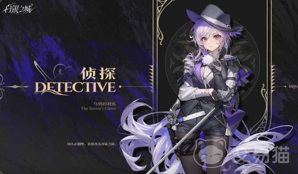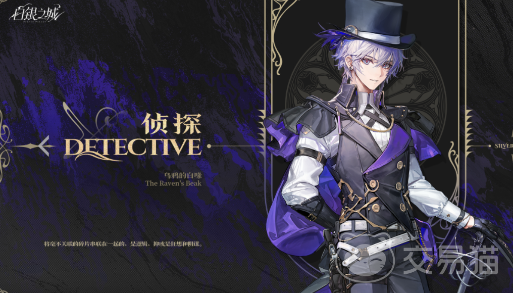 另外一个角色就是游戏里最主要的侦探,单从外观就可以很好的辨别这个角色,角色会身穿蓝紫相间的短款服装,同时搭配同色系的帽子,银色头发在紫色布料的映衬下也会带出紫色的光芒,如果选择的是男性形象,在穿着配色上是一样的,只不过这个男性角色是短发,侦探是相对比较理性的,并且有着优秀的分析能力,行动也是非常高效的,他们肩负着维护城市治安的重大责任。