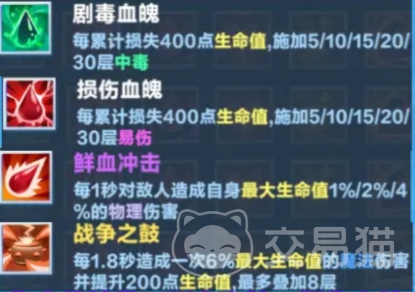 他前期主要以连败为主,这个阶段不要主动去刷新找卡,因为此时资源有限,到了中期就可以开始以100的成本去刷新找生命卡了,优先升10去找紫卡,像猛兽血脉、不灭战魂、鲜血冲击这些紫卡,那可都是必拿卡,尤其是鲜血冲击,等紫卡都有了之后,还是继续补毒并且升10去拿紫卡,在这期间生命关键卡只要看到就都要拿下,后期到了12回合的时候,就要凑等级升15了,这个时候要找的生命金卡有战争重鼓、圣光信仰等,同时要将生命流派的属性提升到40,让自己的生命值足够。