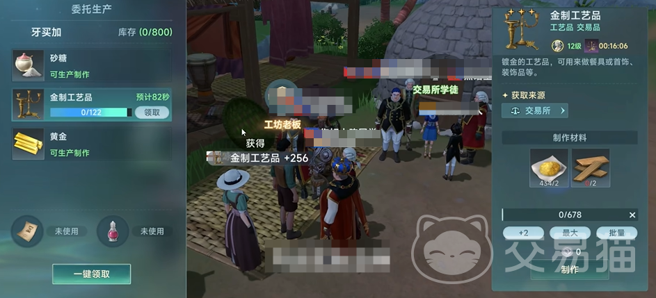 所有的材料准备完毕,就可以开始正式制作了。这个过程中可以提升丰富的工艺经验值,角色的商业经验也可以得到很大的提升,是提升角色综合实力的最为稳妥的方式。此外金制工艺品本身也有不错的市场价值,出售之后可以获得大量银币,形成稳定的经济来源。