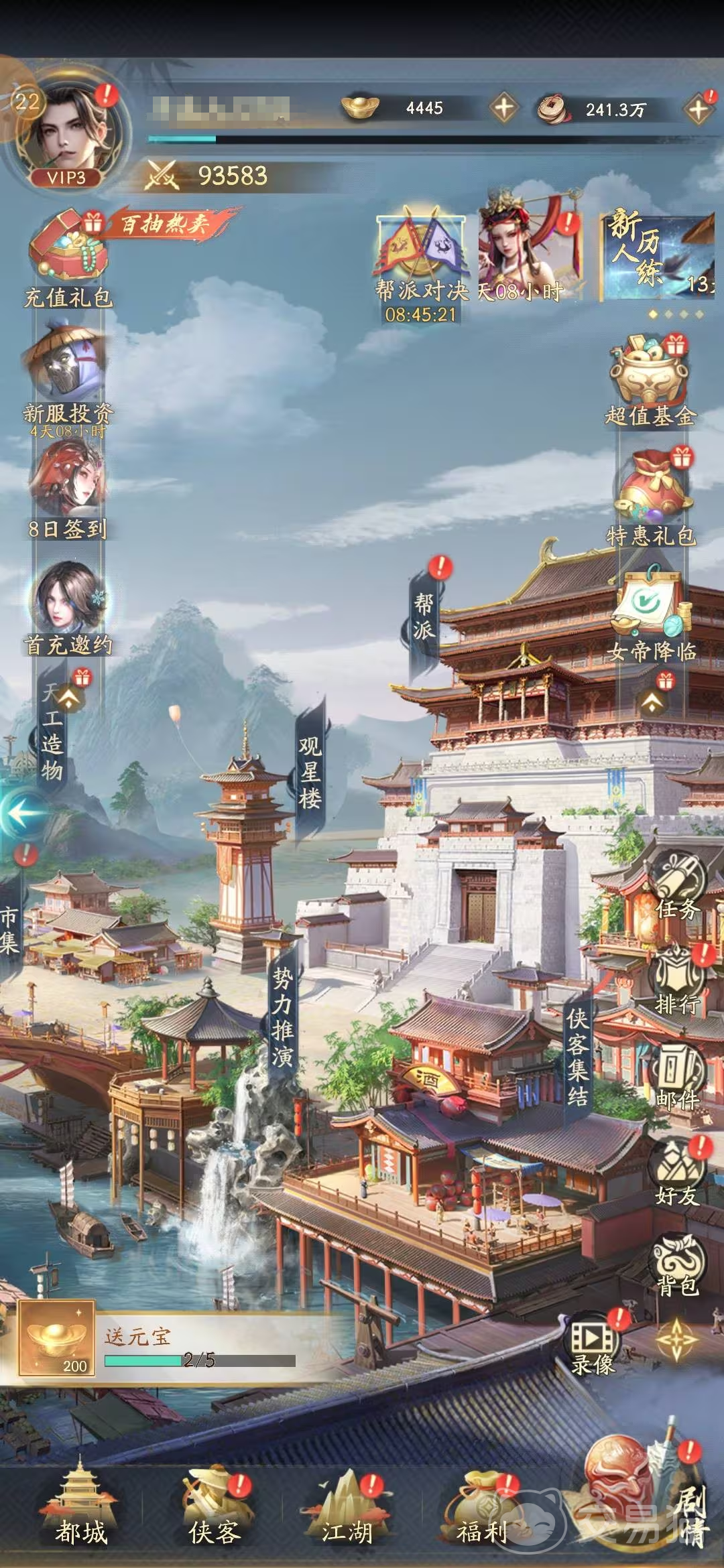 有一些任务是新手们每天都要去完成的,第一个就是主线和精英副本,优先通关主线就能解锁更多新的功能,比如观星楼,神武阁之类的,能更全面的找到游戏的乐趣所在;显示活动也及得参与,有很大几率可拿到SSR的碎片,以及限定武器;帮派任务也要记得做,可以有心去兑换心仪的侠客的碎片。