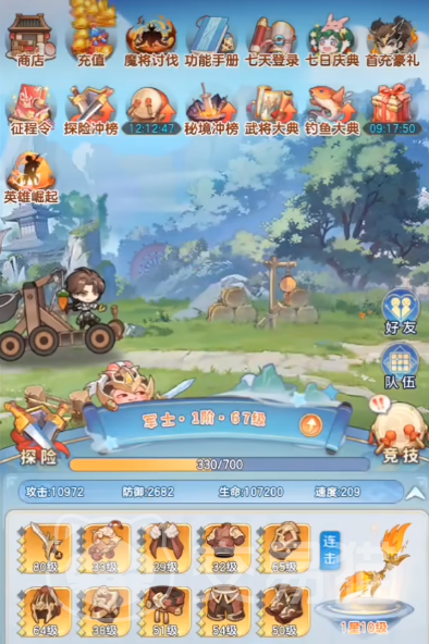 游戏开始之后,玩家可以带领三国武将,驾驶投石车,不断在场景里前进,遇到对手之后,就可以借助投石车向对方发动进攻,如果能顺利击败对手,玩家就能把对方的装备和武器统统收入囊中,每次挑战除了获得这些装备之外,还能得到等级上的提升,等级越高,后期的战斗会越轻松,玩家也有机会获得一些厉害的装备。