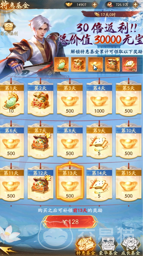 之后大家想要获得奖励,系统会为开通了基金的玩家直接赠送10天的所有奖励。一般来说大家只要在一个月内上线五天就可以领完所有奖励,不过前10天如果领完之后的话,那么就要等到5天之后就可以将15天的奖励都领完。