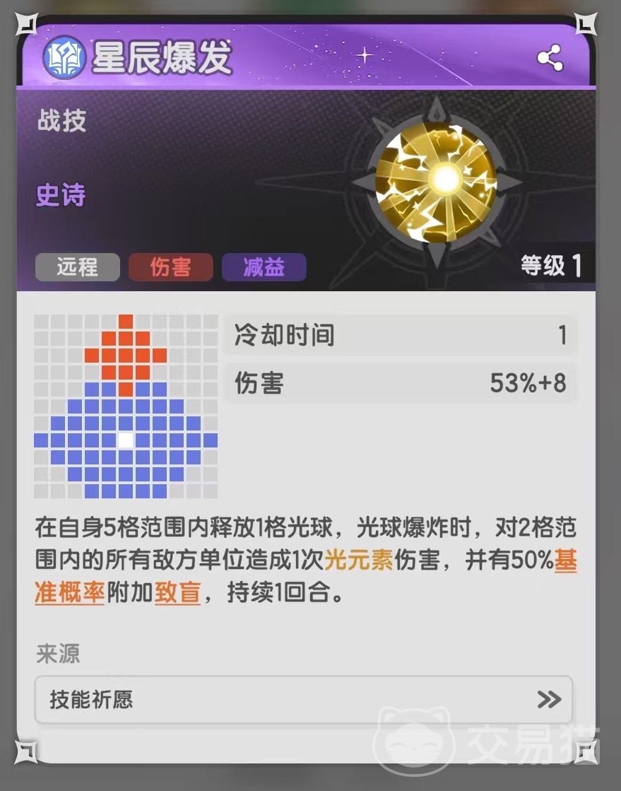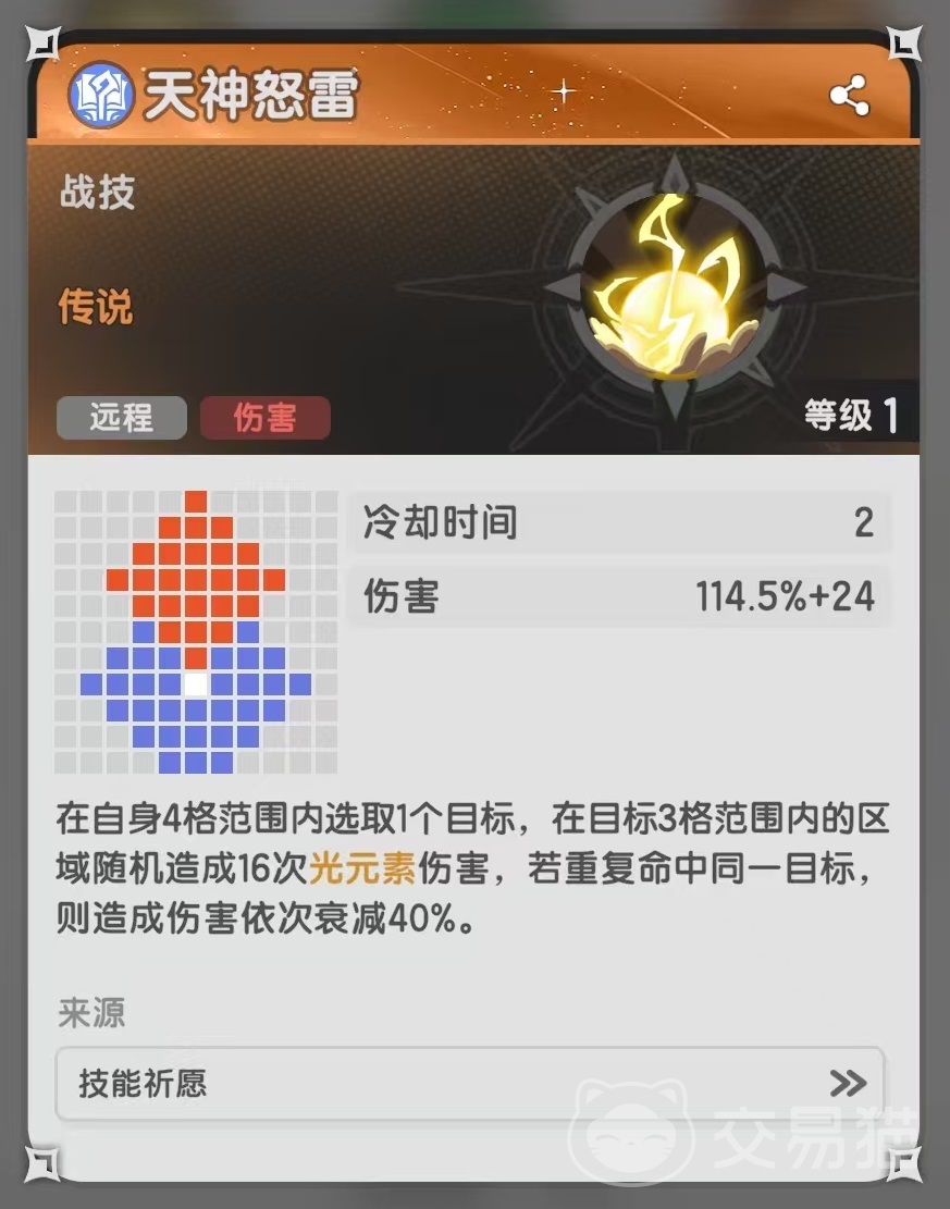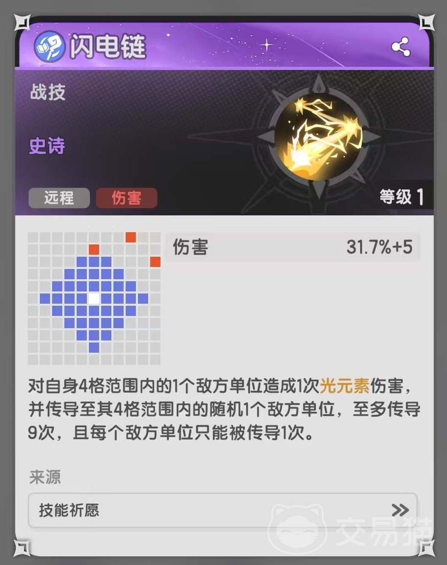 在核心技能选择方面,有4个技能最为重要,分别是光能灼射、天神怒雷、星辰爆发和闪电链。光能灼射属于光系技能,有概率触发致盲,是技能核心。天神怒雷这个技能是目前段数最高的技能,可以造成海量伤害,有大概率触发光能灼射并且补充伤害。星辰爆发属于中等范围的致盲类型技能。闪电链,伤害能够起到弹射效果,可快速清理小怪,造成光系伤害。