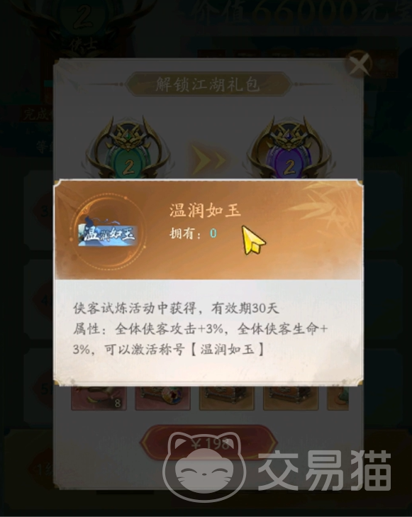 虽然他的有效期只有一个月,但是却可以提升全体侠客的3%的攻击力以及3%的生命值,并且能激活温润如玉称号,可以彰显大家的身份,并提升实力。之外也有大量的豪华奖励,例如海量的元宝以及头像框或者可以抽卡的道具,甚至还能获得极品装备,让你少走弯路,直接一步到位。