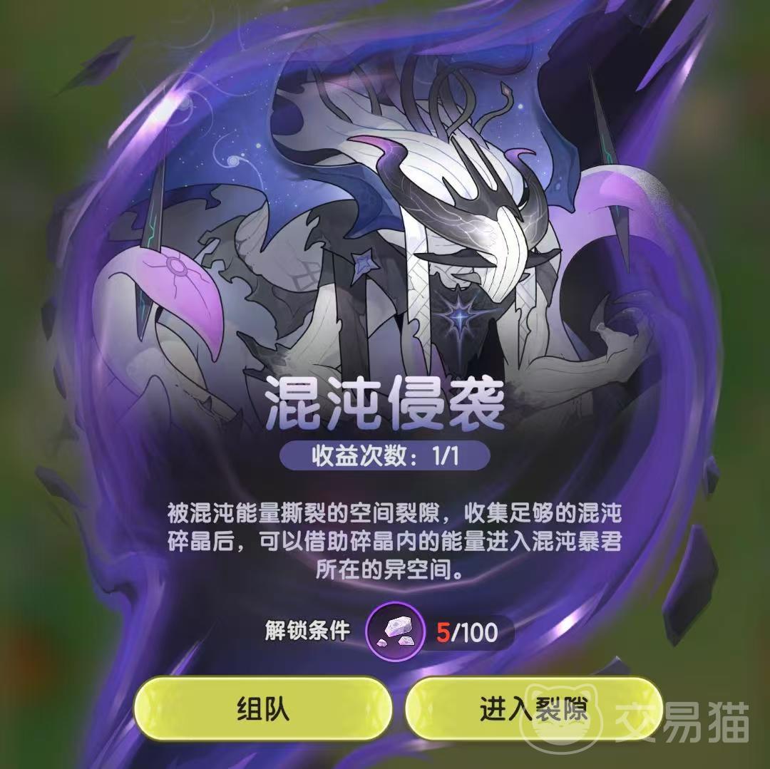 在活动开启之后,整个游戏内都会被各类混沌魔物所侵袭,冒险家们需要击败魔物,收集混沌碎晶,根据队伍人数和击败怪物规模。可以获得混沌碎晶数量也有一定的区别,例如小型怪物,只能获得5~20枚,大型怪物则可以获得50~100枚,每次活动期间,每个冒险者最多可以收集100枚混沌碎晶。当集齐之后,就可以通过地图内的混沌缝隙,传送至混沌暴君所在的空间去挑战暴君了。除了单人战斗之外,也可以和其他收集了足够的混沌碎晶的玩家一起组队。首次挑战混沌暴君,可以获得数量丰厚的混沌晶块作为奖励。无论是混沌碎晶还是混沌晶块,都可以在神秘商人处兑换很多道具。